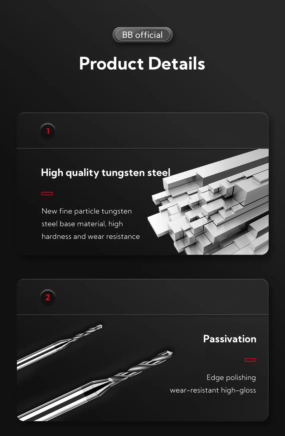 -The whole bit is made of Solid Carbide, which makes the bit more durable. But it also makes it easier to break, so it's forbidden to use electric hand drills and unstable machining environments.