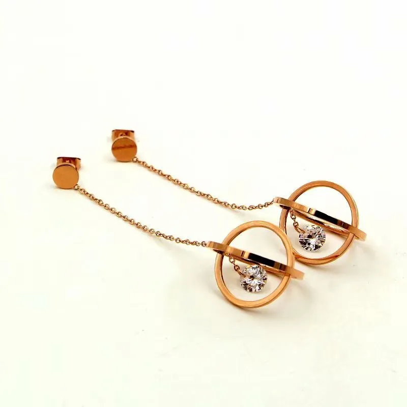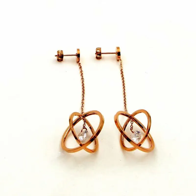 Hollow Ball Hanging Single Diamond Zircon Rose Gold Earrings