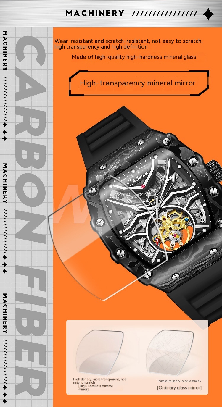 Hollow Mechanical Watch – Men's Waterproof Luminous Timepiece