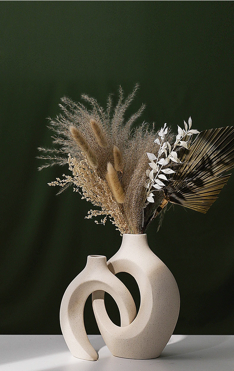 The Hollow Nordic Modern Ceramic Vase Set of 2 is a stunning and functional addition to any home decor. Their unique design, high-quality ceramic construction, and versatile use make them ideal for stylish flower arrangements and decorative displays. Whether enhancing your living room, bookshelf, or any other space, these vases bring a touch of modern elegance and boho charm to your home. Invest in this beautiful vase set to elevate your interior decor and enjoy the timeless beauty they offer.