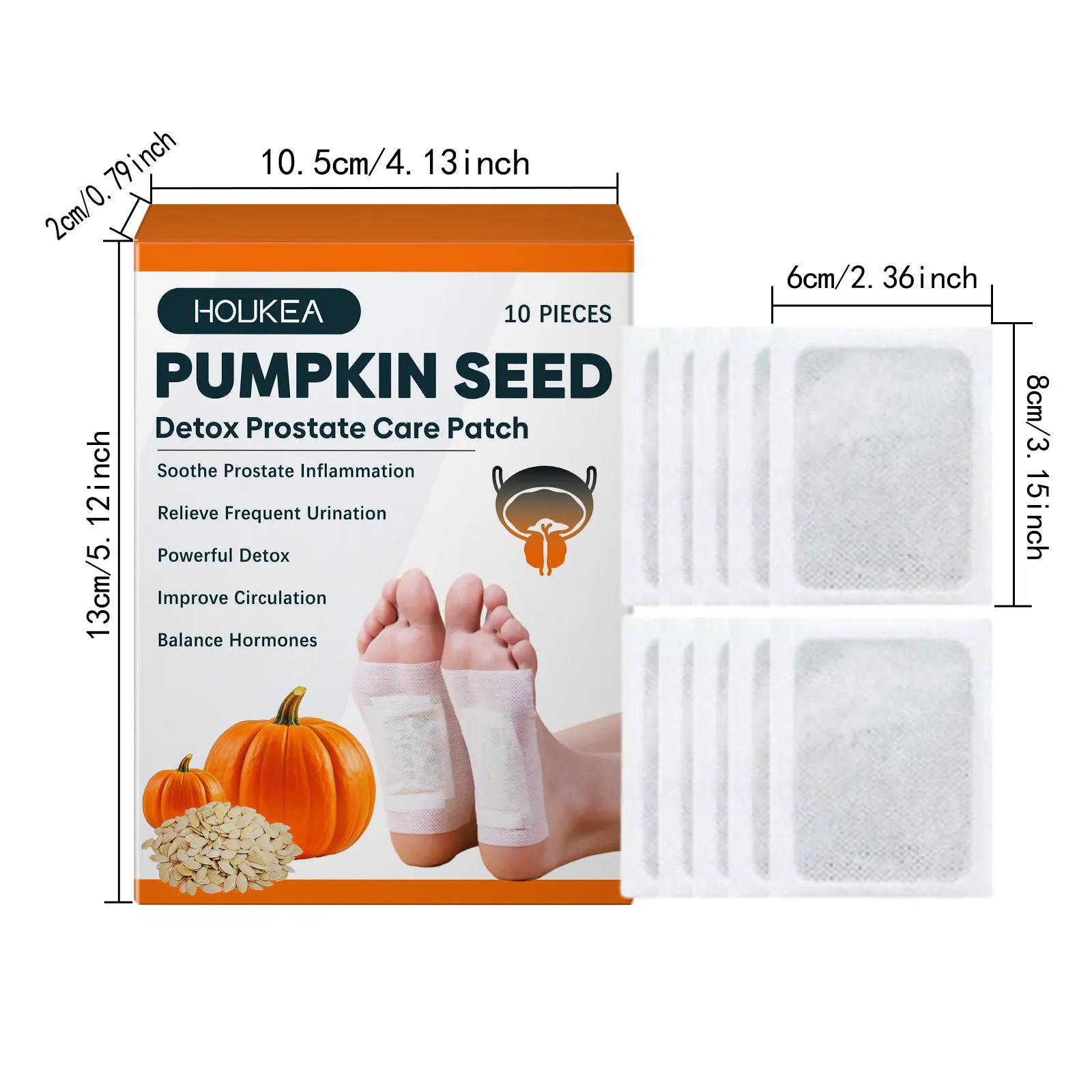 The HOLUKEA Pumpkin Seed Detox Prostate Care Patch package includes 10 individual patches, allowing multiple applications.