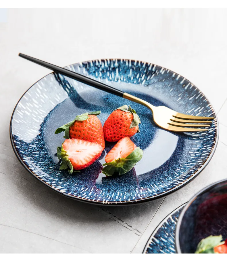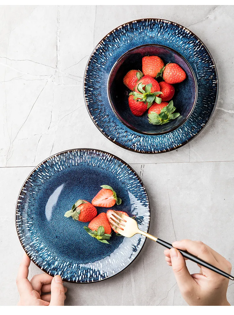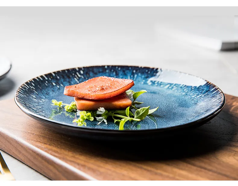 Home Blue Creative Ceramic Dish Round Plate is more than just a plate—it’s a blend of style, functionality, and