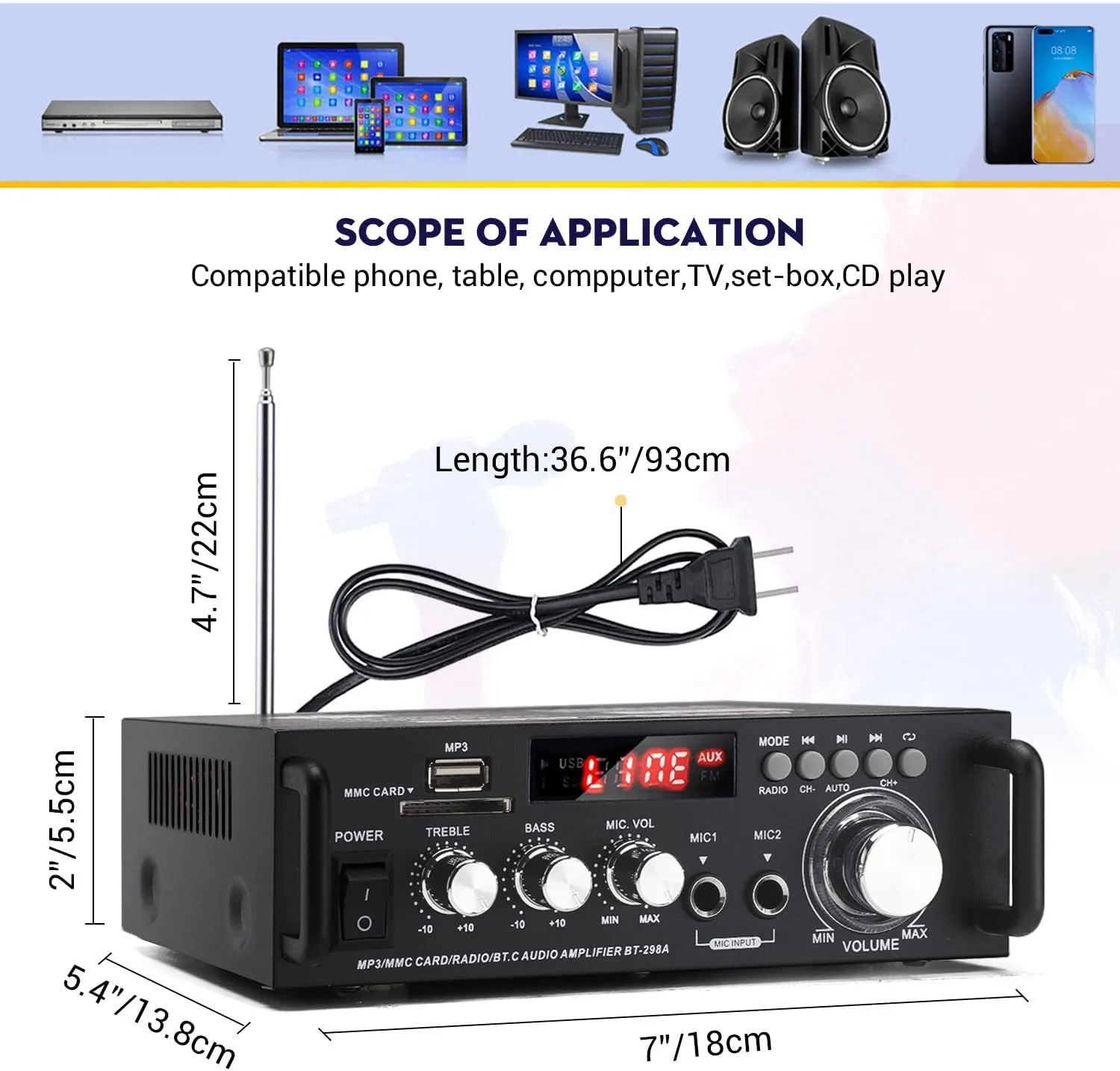 The Home Stereo Amplifier is built to provide clear, distortion-free sound, boosting audio signals to a level strong enough to drive passive speakers. By amplifying weak audio signals from various sources, such as your TV, smartphone, CD player, or turntable, it produces fuller sound with increased volume and clarity. This amplifier works seamlessly with your audio system, ensuring that your speakers deliver their full potential.