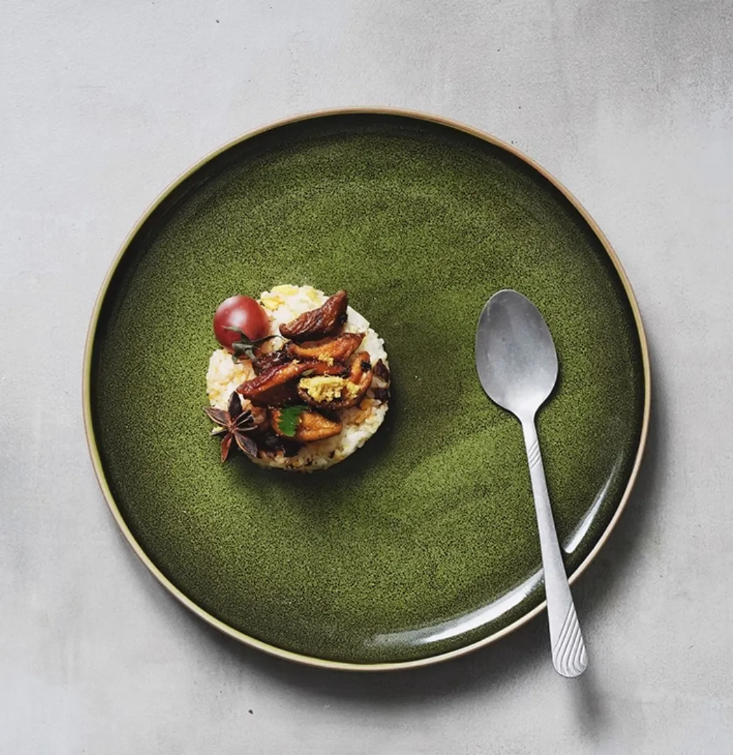 Use ceramic plates to elevate table settings, pairing with complementary serveware, linens, and glassware.