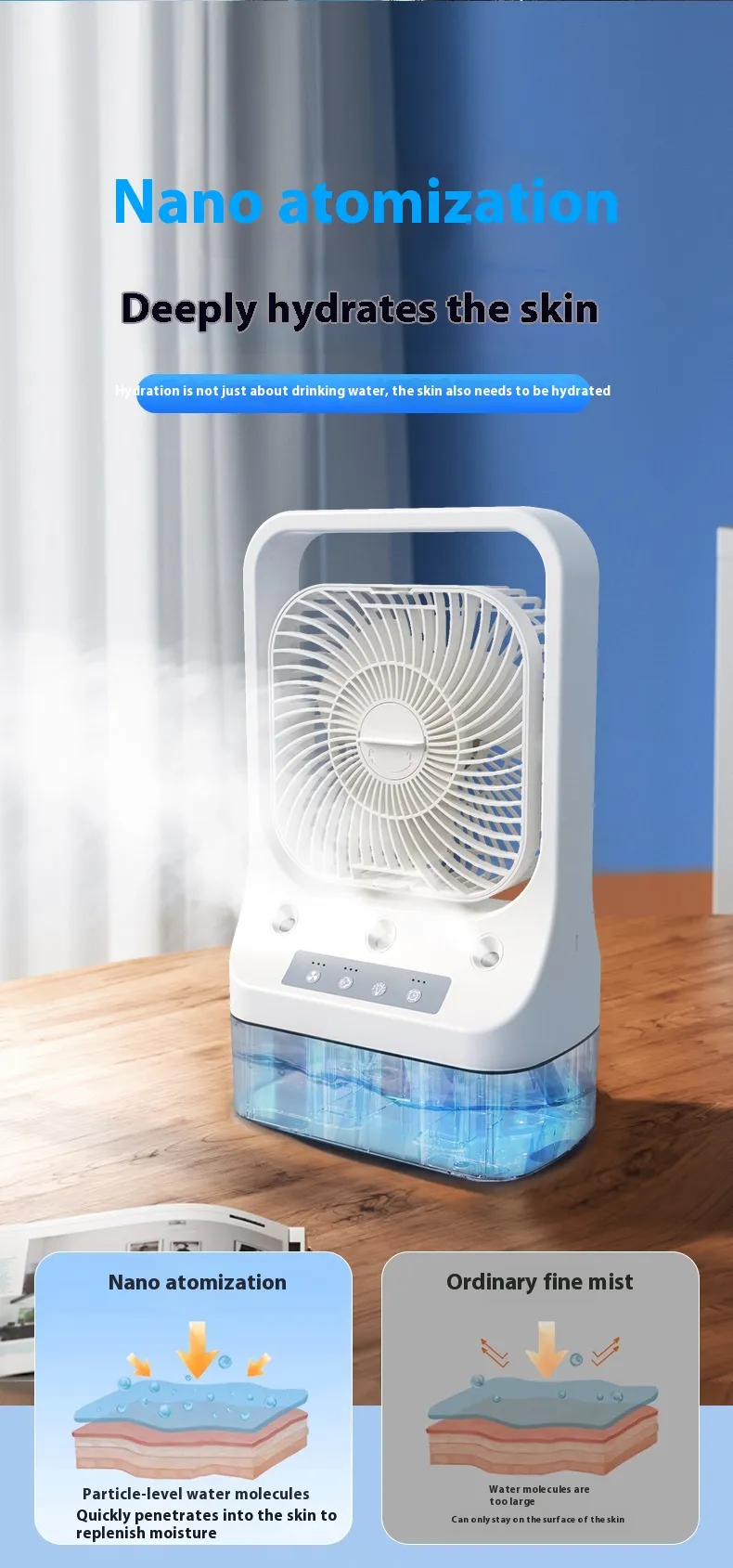Whether placed in the bedroom, living room, kitchen, study, or office, this fan adapts to any indoor environment. Its compact design makes
