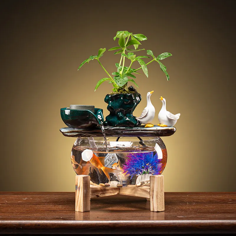 D: Graphite (green) flowing fish tank [swan]+duck's paw wood,