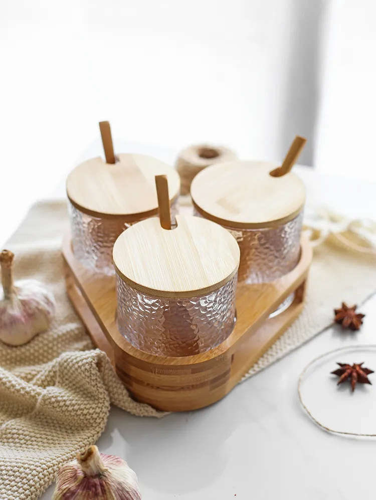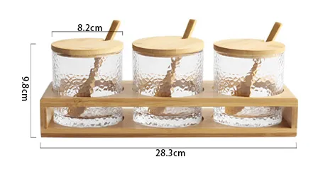Household Kitchen Glass Seasoning Box Bamboo Lid Seasoning Bottle