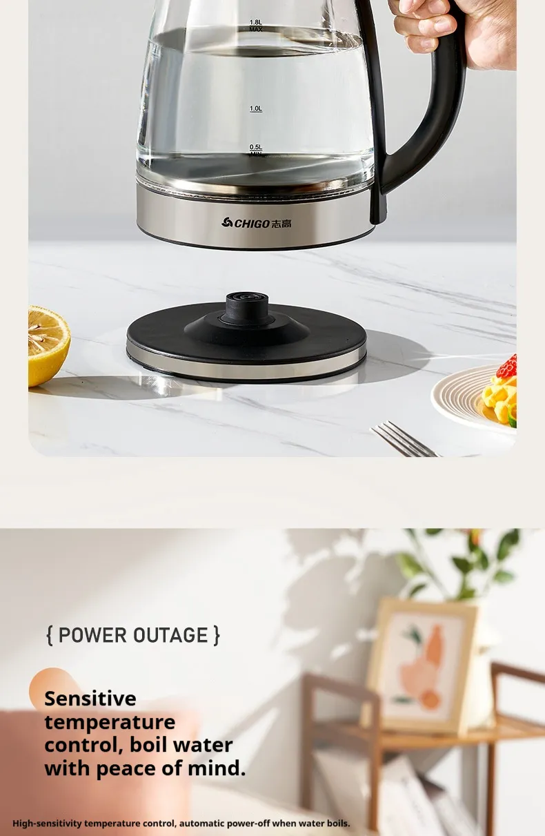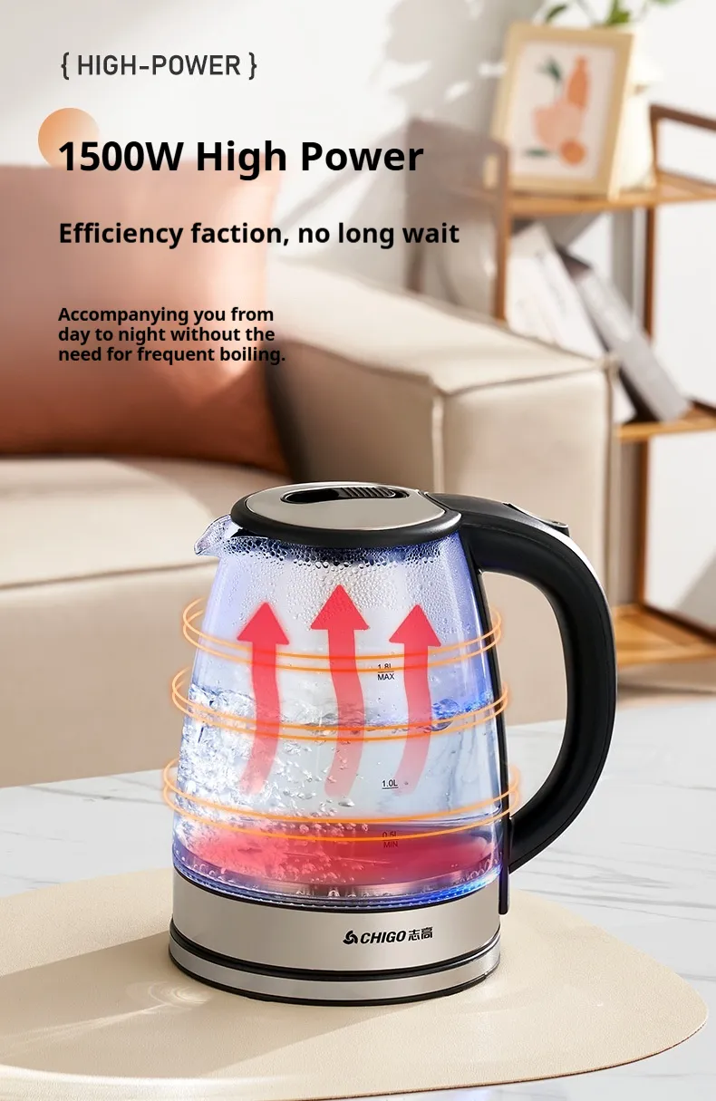 This water kettle is designed for efficient and safe boiling with a clear borosilicate glass body that allows you to easily monitor water levels. The large capacity makes it suitable for preparing multiple servings at once, reducing the need for repeated boiling.