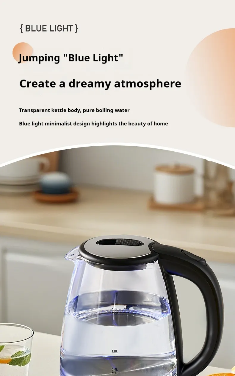 Household Glass Water Kettle, Borosilicate Glass Kettle NZ, electric kettle, large capacity kettle, automatic shut off kettle, glass kettle, kitchen kettle, water boiler