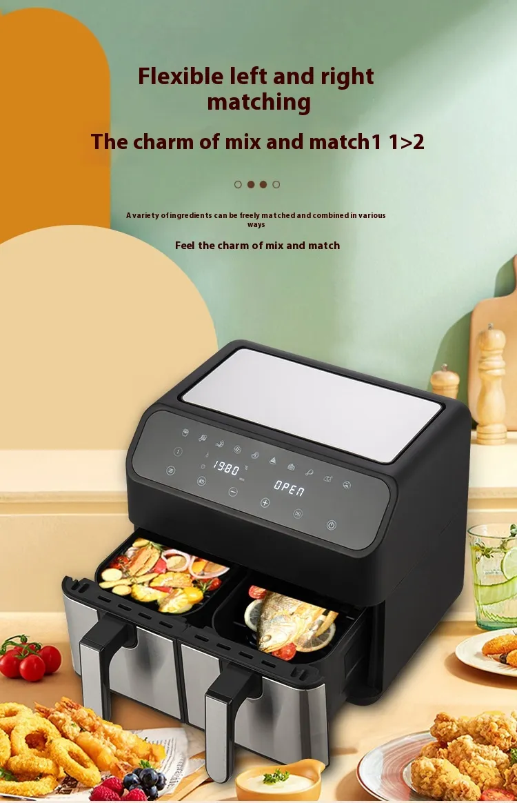 Household Multi-function Visual Intelligent Touch Screen Double Pot Air Fryer