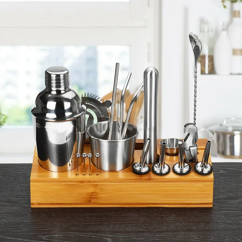 Household Simple Cocktail Shaker Set – 22-piece Mixer Bar Strainer Stand for Home Bartenders