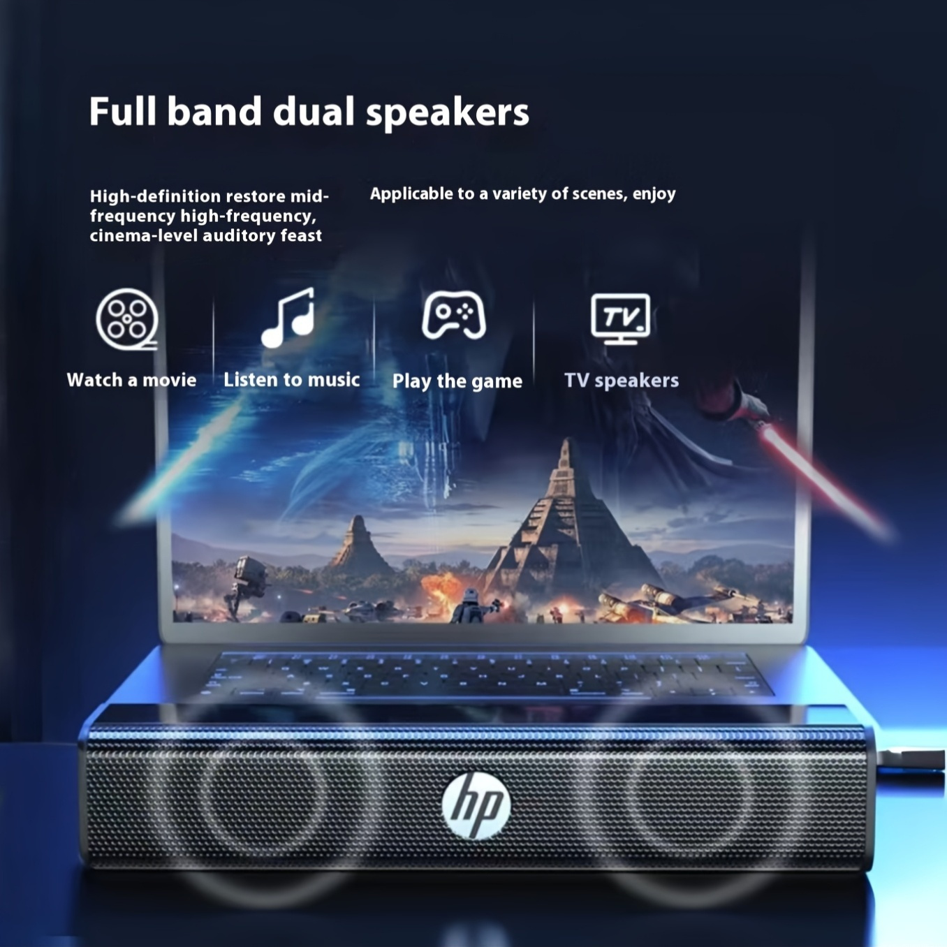 HP Laptop Speakers (Desktop Soundbar) — “Bring the Cinema Home” Sound for Laptops, PCs & Everyday Devices