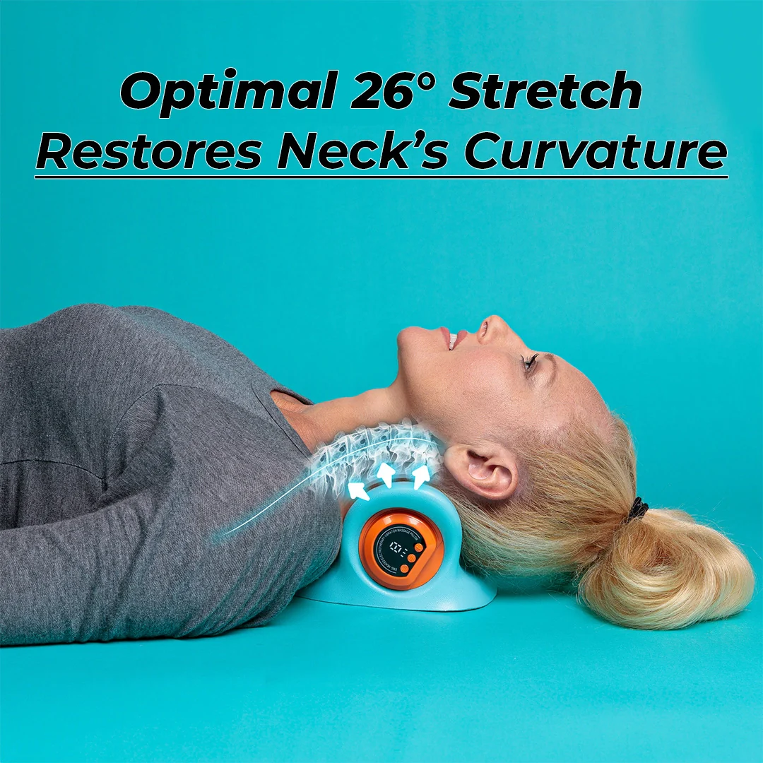 When you lay down on it, it stretches your neck at the perfect 26° angle, which is the most effective one when it comes to