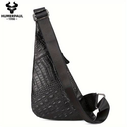 HUMERPAUL Men’s Genuine Leather Crossbody Bag – Stylish Alligator Pattern with Multi-Compartment Design for Daily Commute