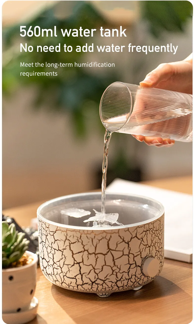 Ideal para dormitorios, salas de estar, oficinas o cualquier espacio que necesite un toque de tranquilidad, este humidificador difusor es más que un simple electrodoméstico práctico: es una cautivadora pieza decorativa que también ofrece una experiencia sensorial relajante. Perfecto para quienes buscan mejorar la calidad del aire interior y crear un ambiente tranquilo, este humidificador es imprescindible para los hogares modernos.