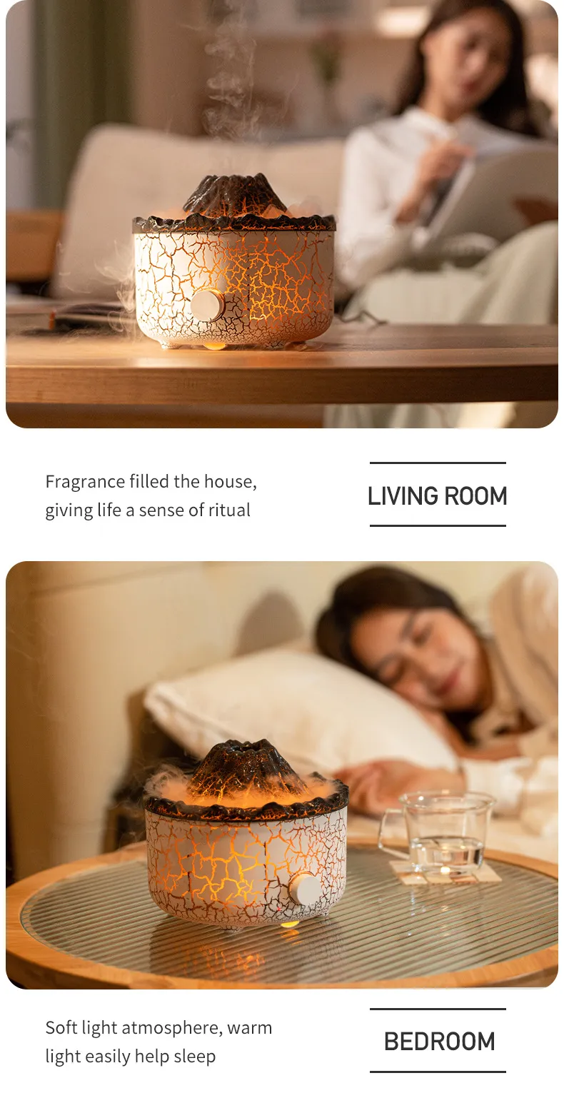 Humidificador de aire con forma de volcán, difusor de aromaterapia con forma de medusa y llama