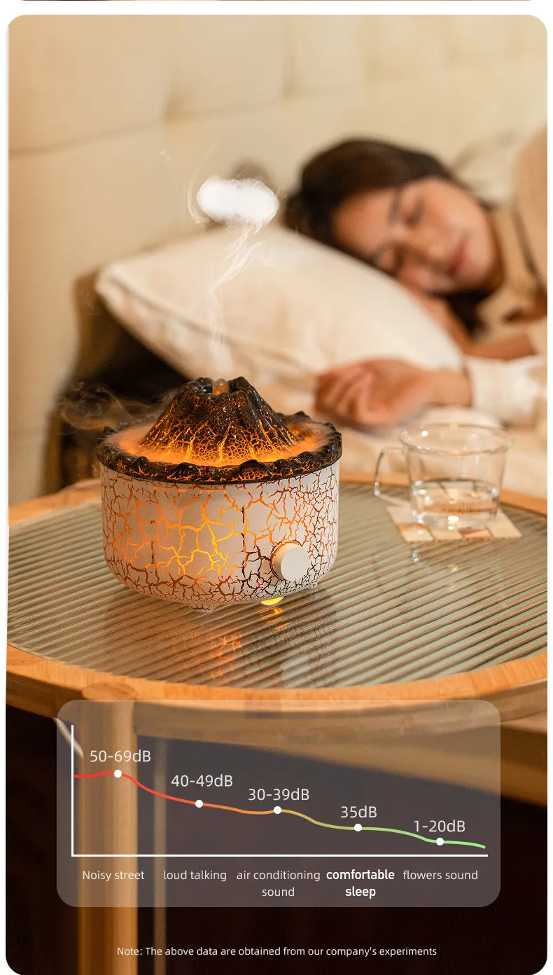 - Diseñado con un motor silencioso, el humidificador Volcano funciona silenciosamente, lo que lo hace perfecto para usar mientras duerme, trabaja o se relaja. Disfrute de un aire limpio y humidificado sin la molestia de ruidos fuertes.