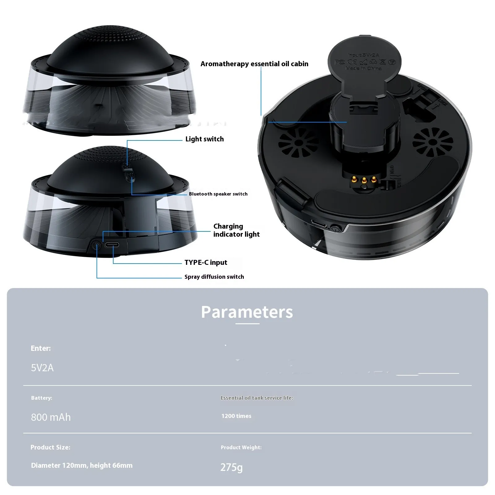 Color: Lámpara de fragancia para coche con altavoz Bluetooth
