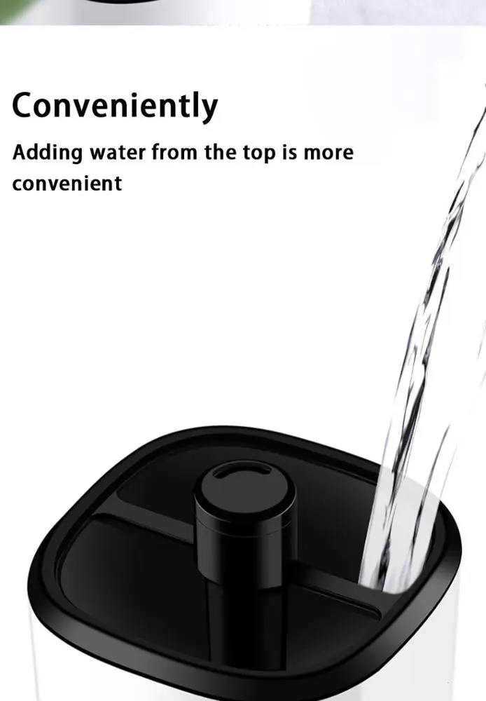 Tanque de agua de gran capacidad: El espacioso tanque de agua permite un funcionamiento prolongado, lo que reduce la necesidad de recargas frecuentes y permite una humidificación continua durante horas.