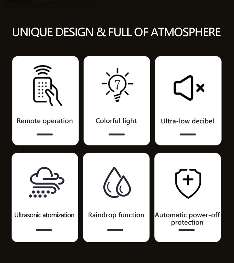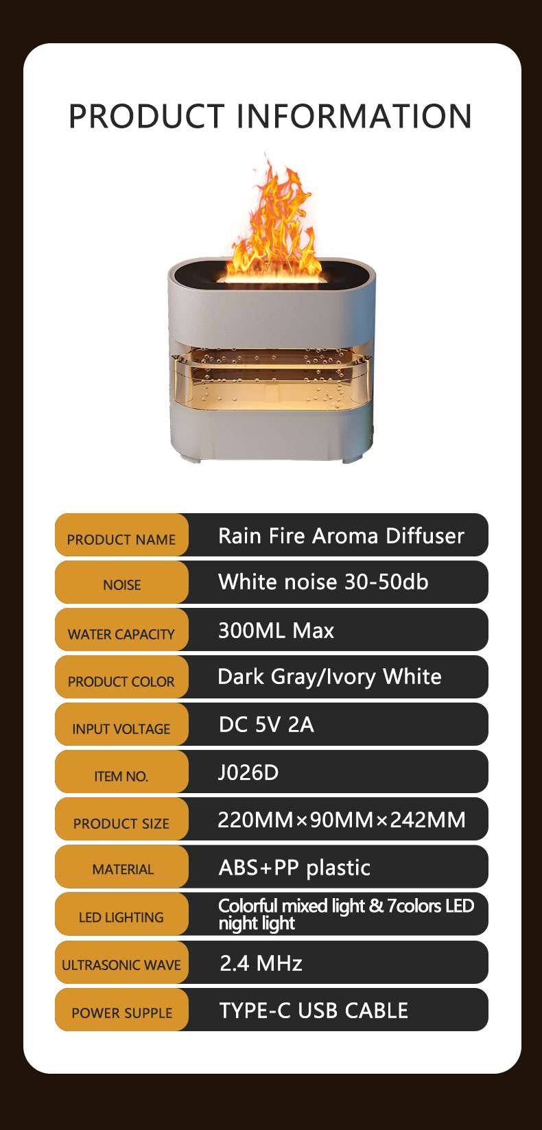 - Nombre del producto: Humidificador Rain Cloud Fire 2024 - Difusor de goteo de agua y difusor de aroma de llama de fuego