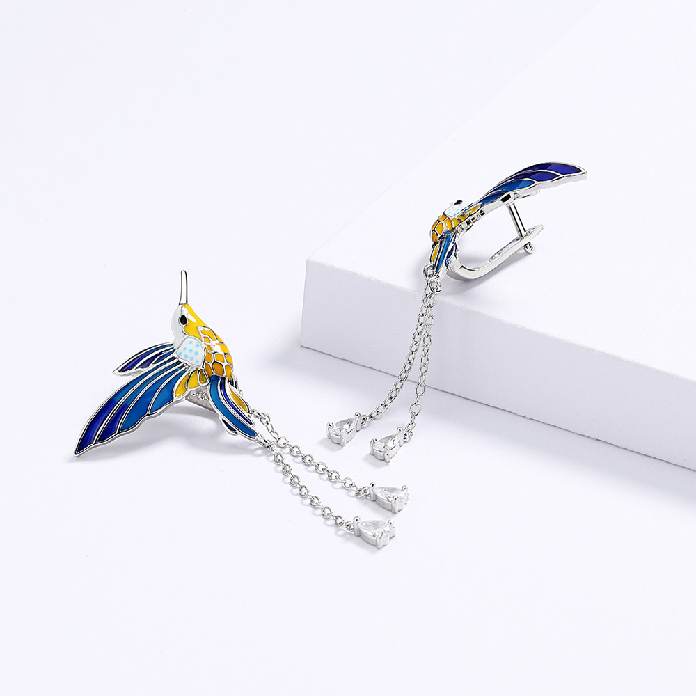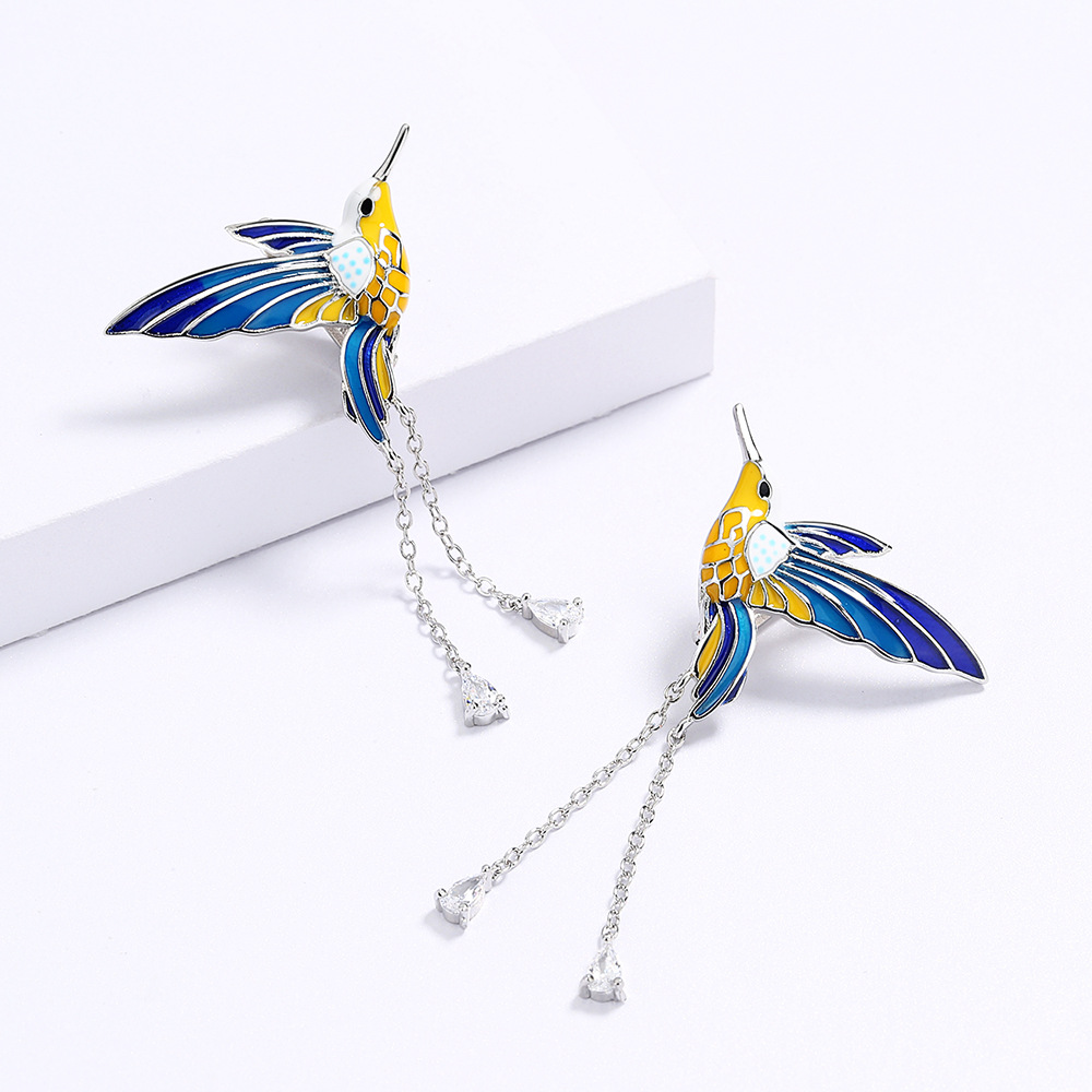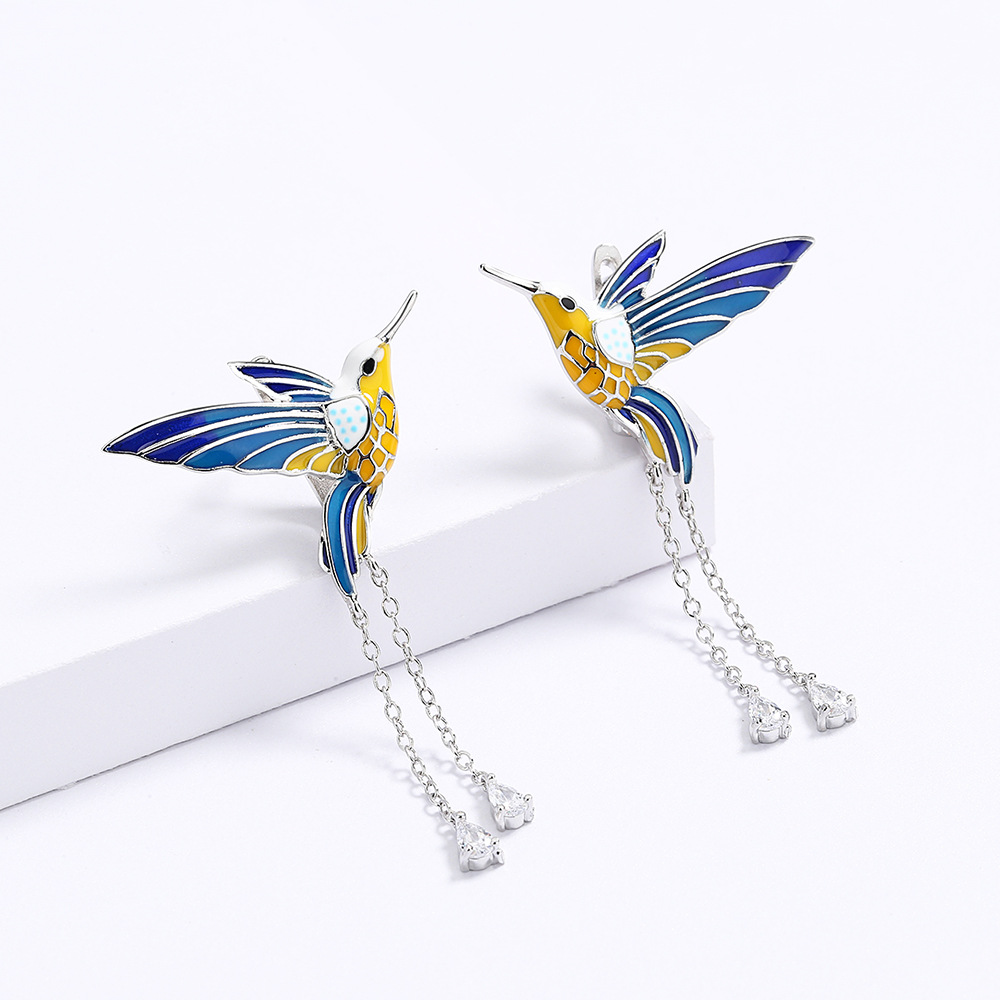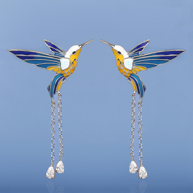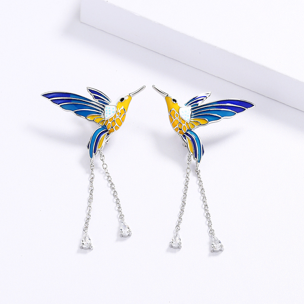 Hummingbird Earrings Epoxy Colored Animal Elements Bird Country Style Female Earrings