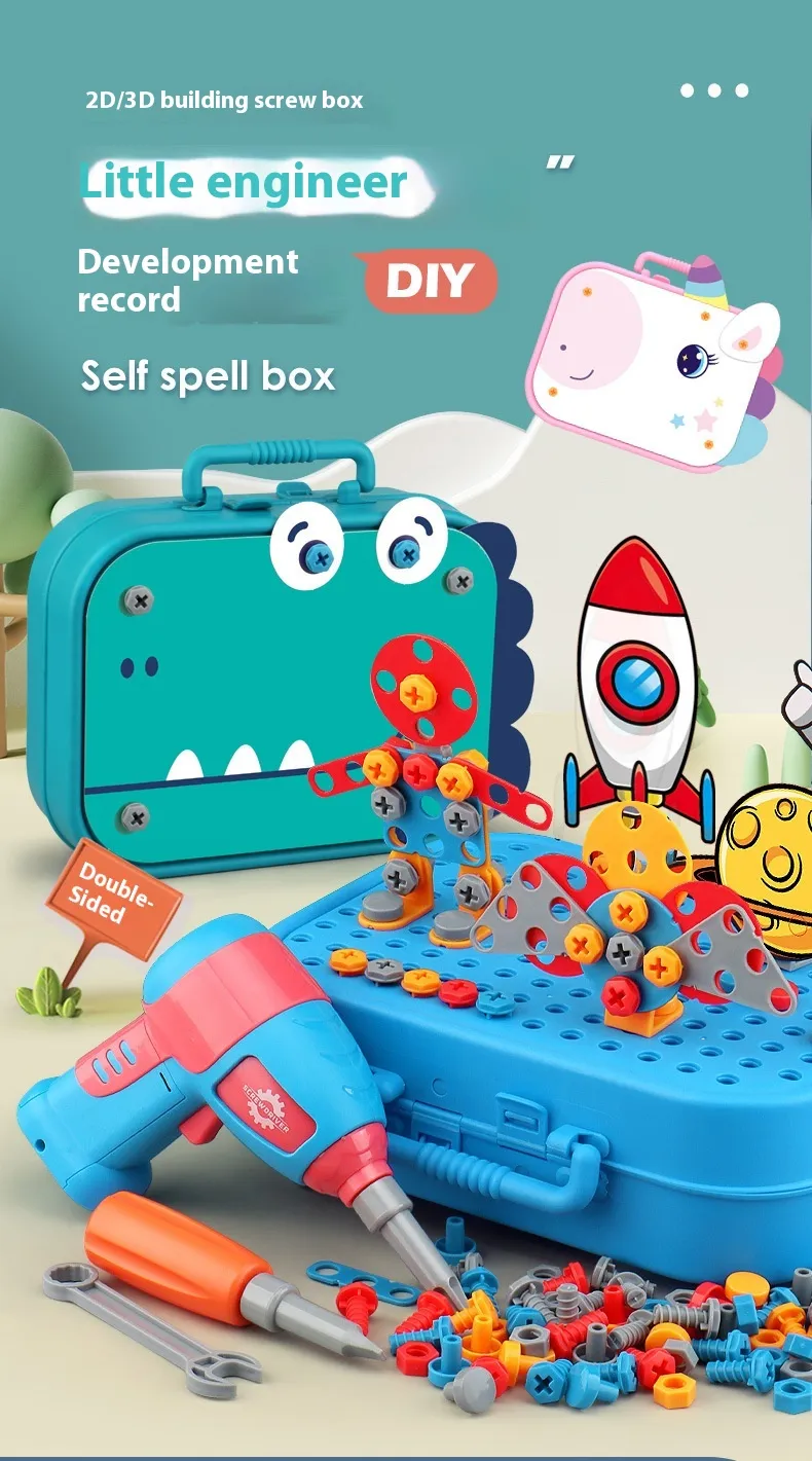 Color: [astronaut] toolbox 156pcs (without electric drill),[dinosaur] toolbox 156pcs (without electric drill),[unicorn] toolbox 156pcs