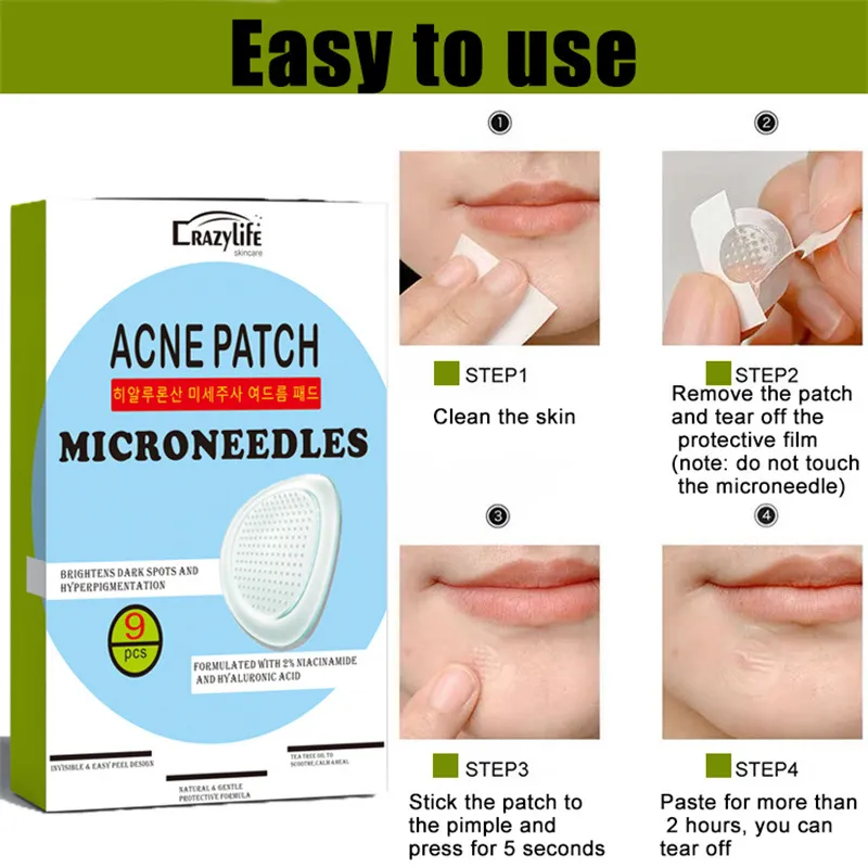 Hyaluronic Acid Microneedle Acne Patch targeted acne spot treatment with dissolvable microneedles delivering deep skin care and hydration for faster blemish recovery
