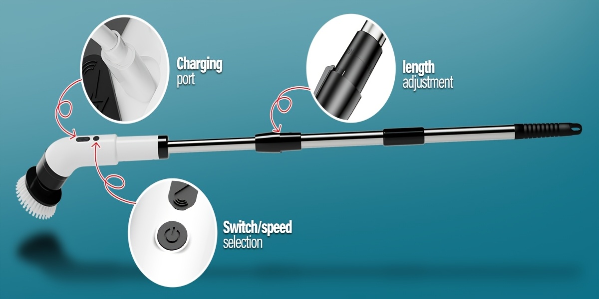 With USB-C charging, the device supports fast charging and convenient power access. Its durable construction and ergonomic design make it suitable for daily home cleaning, deep bathroom scrubbing, and professional use.