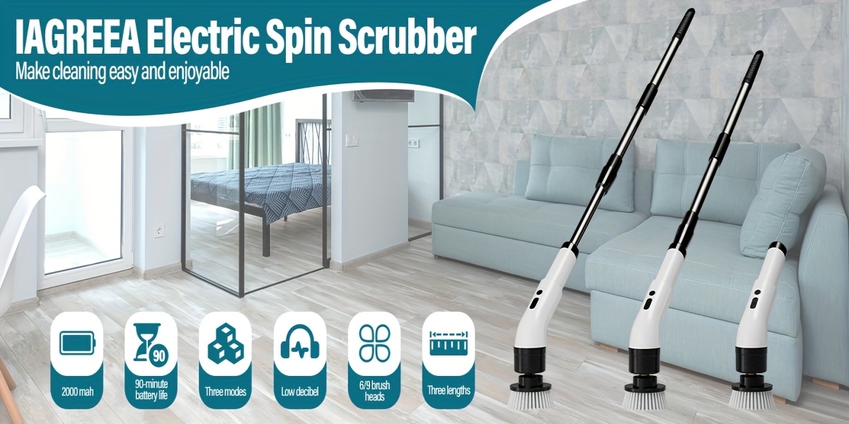 The IAGREEA Electric Rotating Cleaning Brush is a versatile, cordless, and powerful cleaning tool designed for tiles, bathtubs, sinks, walls, and household surfaces. Featuring multiple brush heads, adjustable speeds, an extension handle, and USB-C charging, it provides efficient, low-effort cleaning for daily NZ home use.