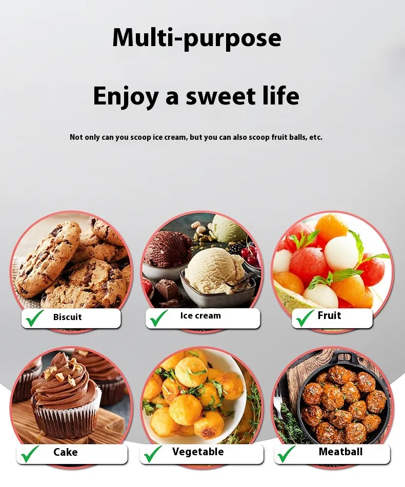 Use it beyond ice cream — portion cookie dough evenly, serve mashed potatoes elegantly, or shape fruit and melon balls.