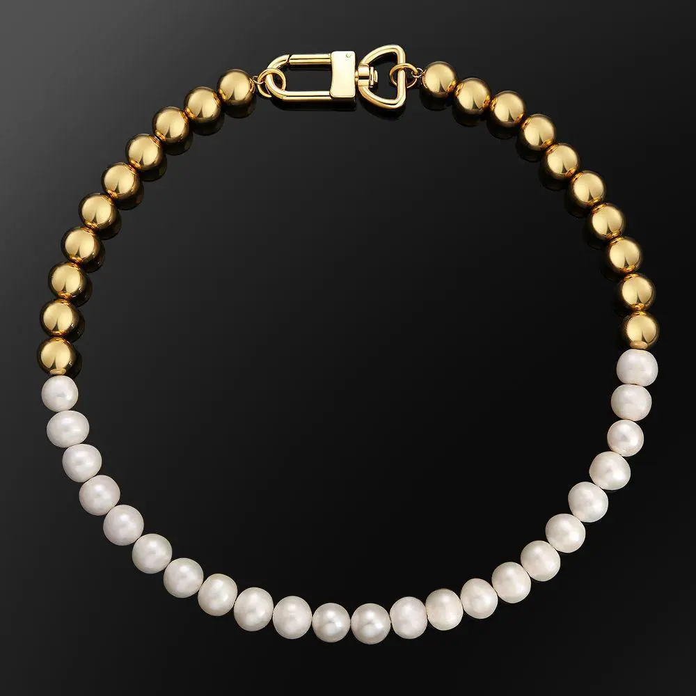 Material: Freshwater pearls, titanium steel