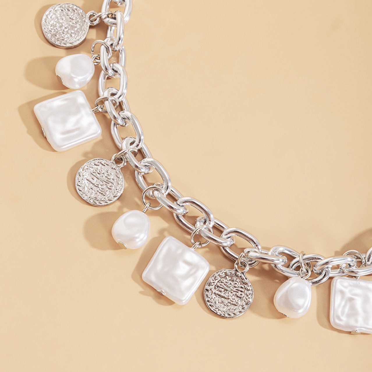 Imitation Pearl Coin Clavicle Chain Women's Retro Multi-cross Necklace
