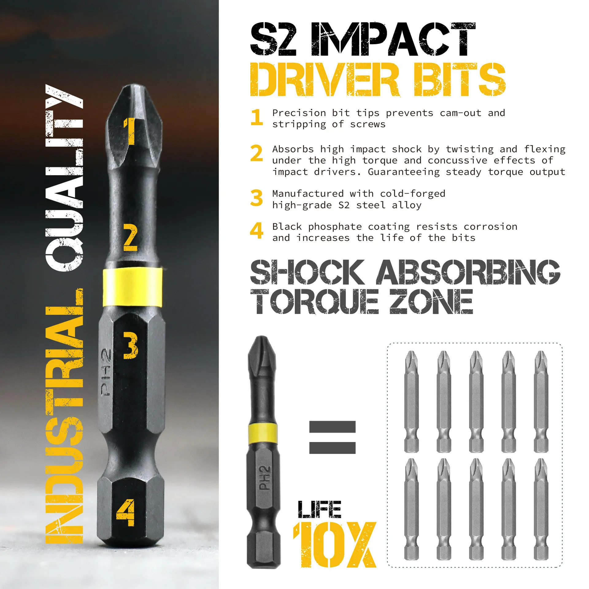 Enhanced Durability: The high-quality construction of impact bits ensures long-lasting performance. These bits are made to