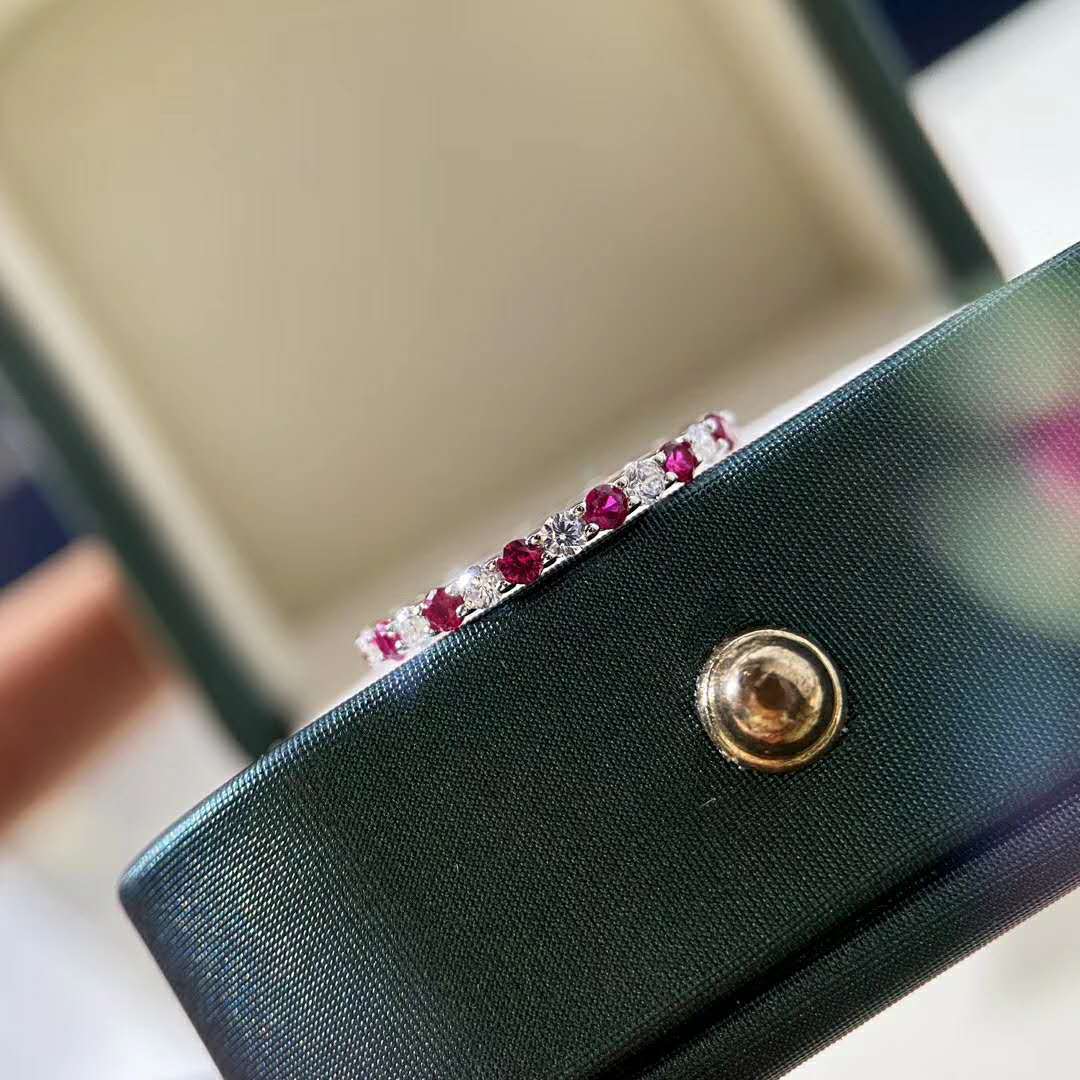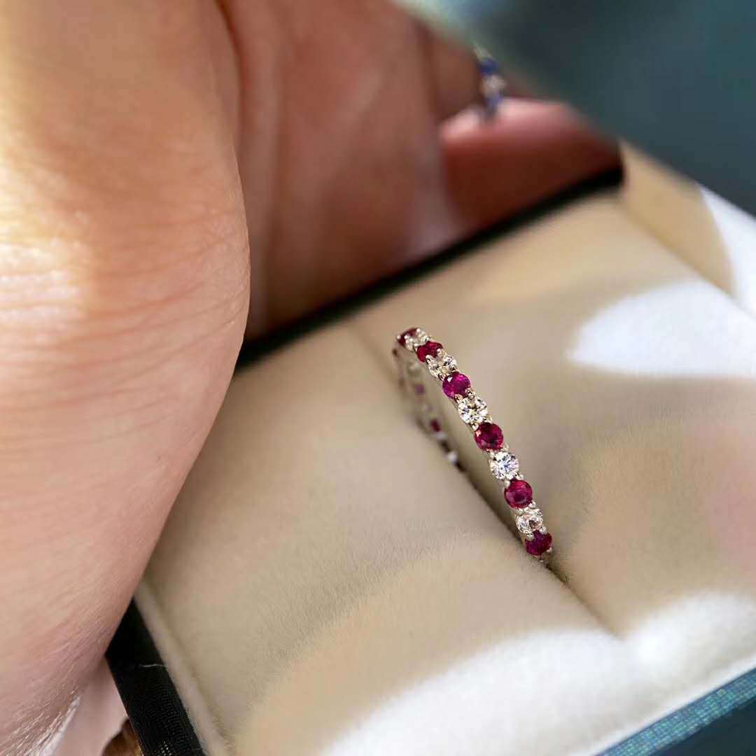 Imported 5A high carbon diamond natural red sapphire row diamond vice ring diamond ring 925 silver plated platinum stacking ring