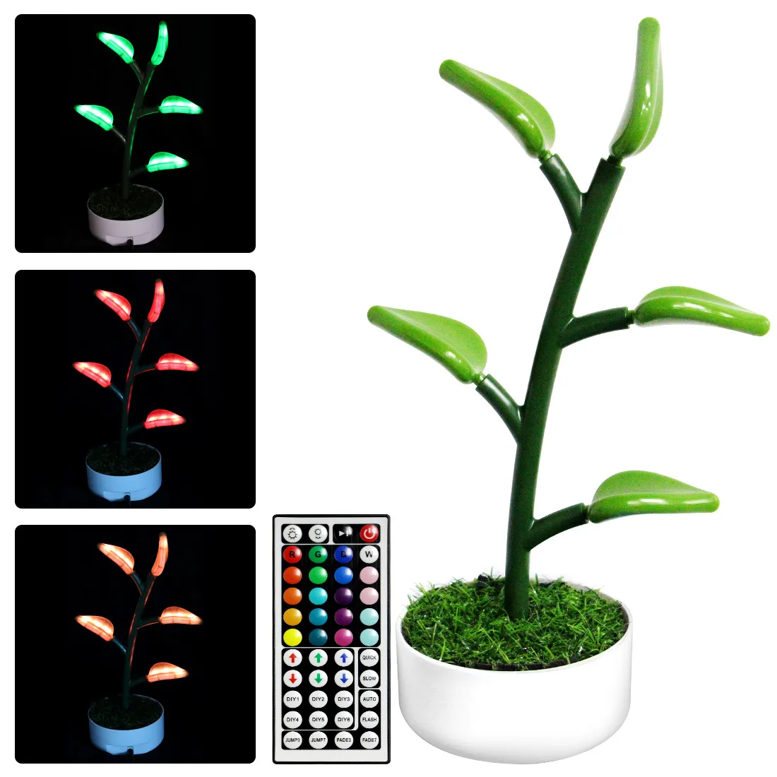 Indoor Home Decor with Remote Control Table Lamp and LED Houseplant Light – Modern RGB Artificial Leaves Design