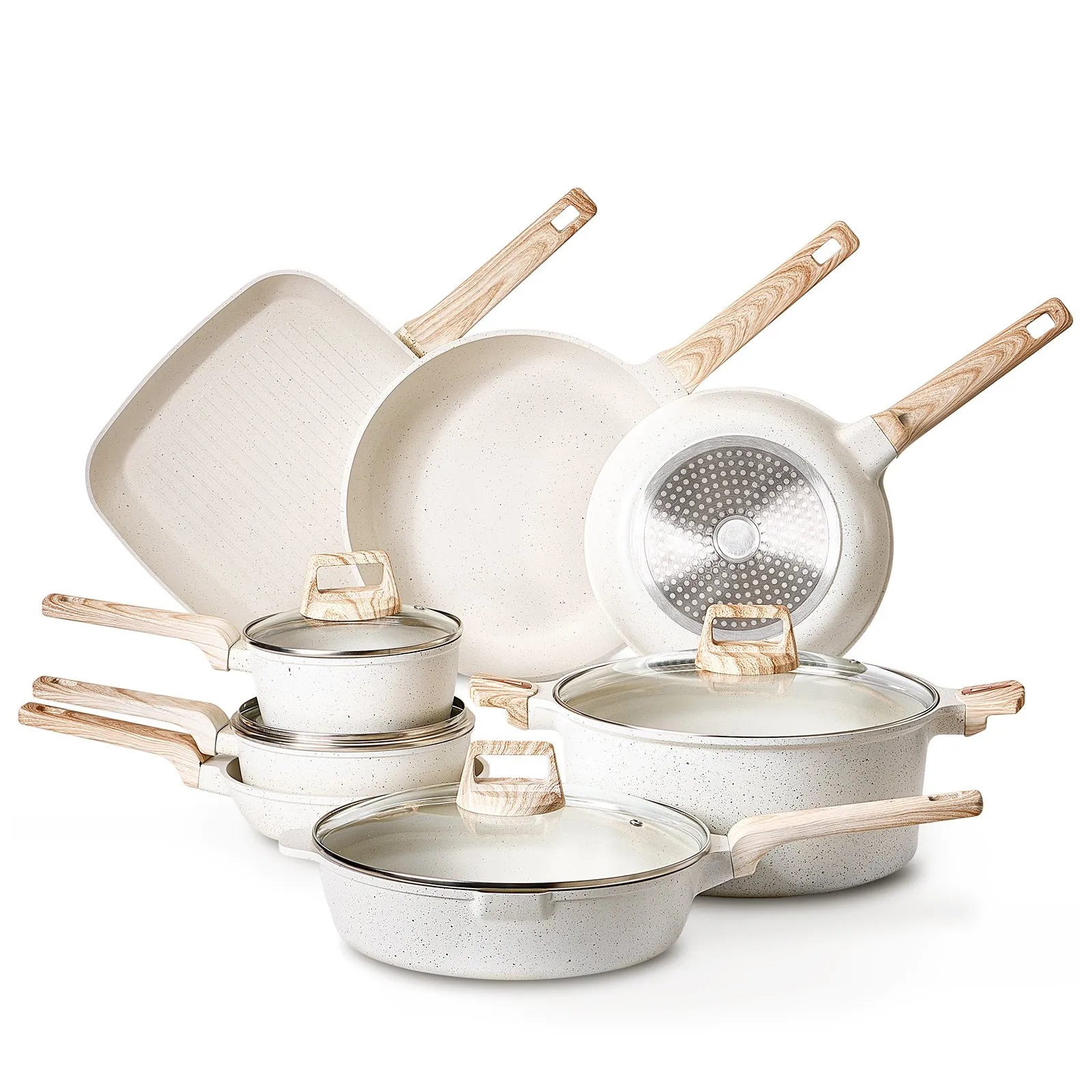 Premium Material: Made with a Maifan stone non-stick coating, this cookware set ensures easy food release and effortless cleaning. The