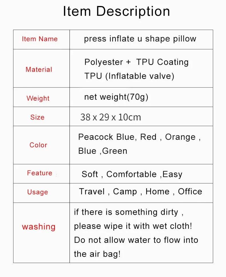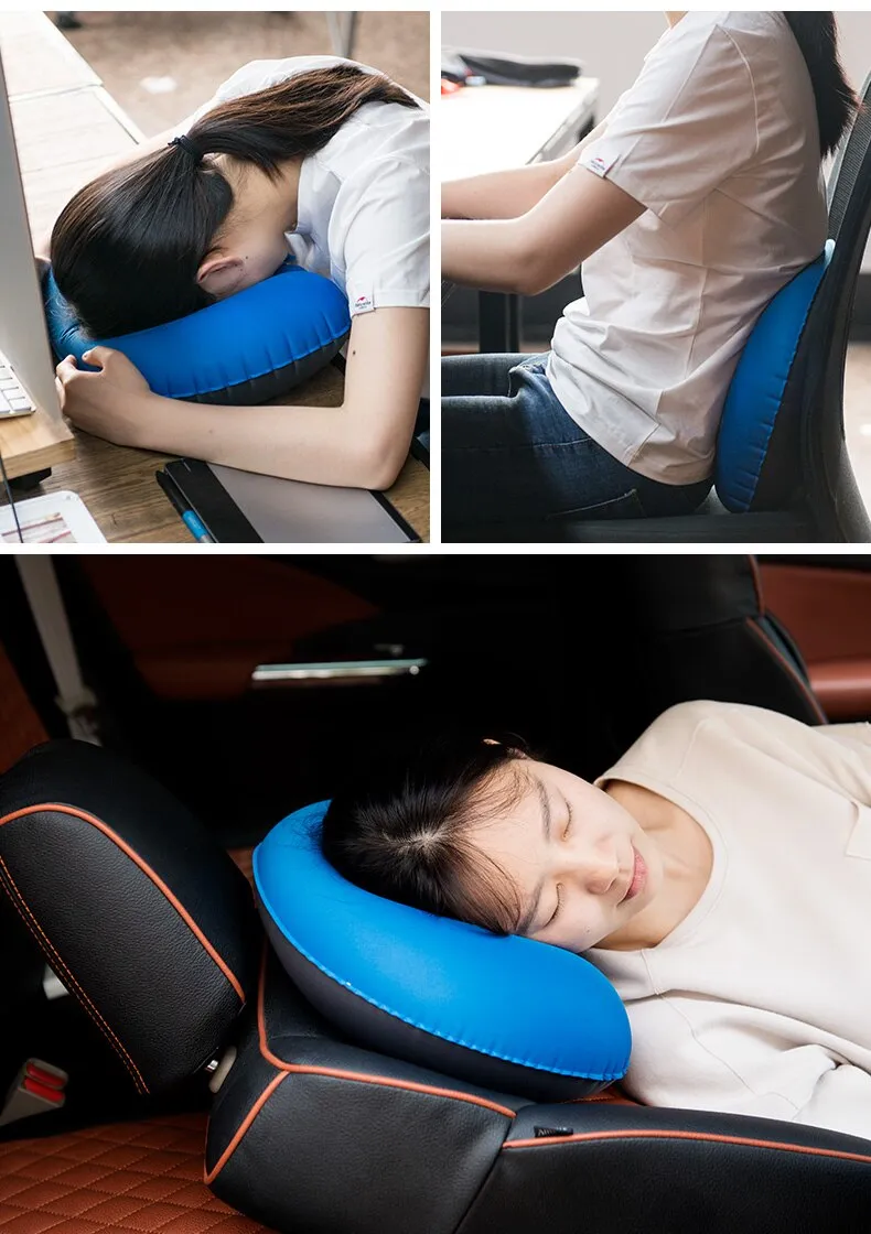 This inflatable pillow is designed for convenience, comfort, and portability. It easily inflates to provide soft and supportive cushioning for your head and neck, helping you relax wherever you are. When not in use, it can be deflated quickly and folded into a compact size for easy storage.