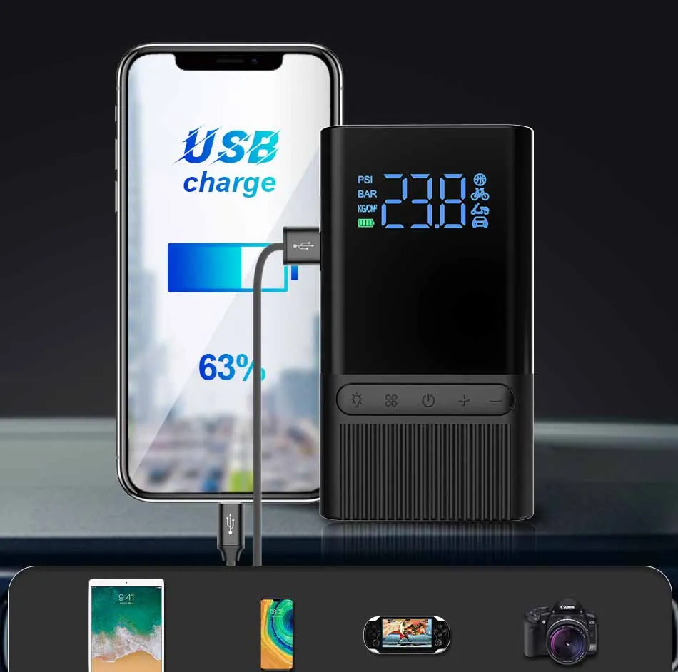 Scope of application: It can inflate cars, electric cars, motorcycles, balls, swimming rings, and other items