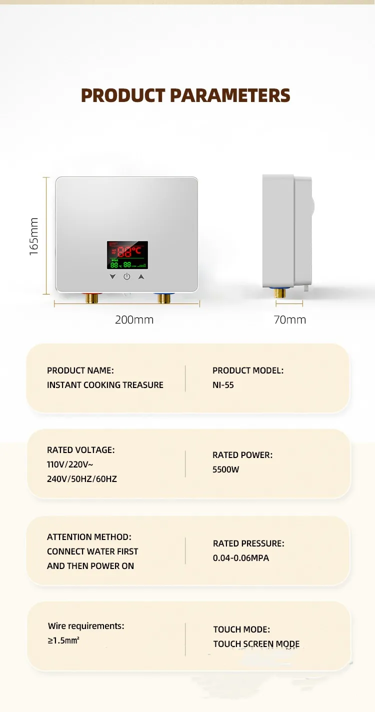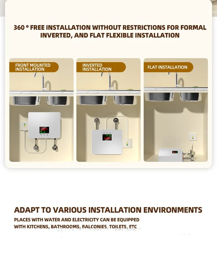 Choose this Inline Water Heater if you want a fast, efficient, and practical source of hot water that fits seamlessly into existing plumbing without the space requirements of traditional tank systems. Its on‑demand heating technology ensures you always get hot water when and where you need it — whether at a bathroom sink, kitchen station, or remote outdoor tap.