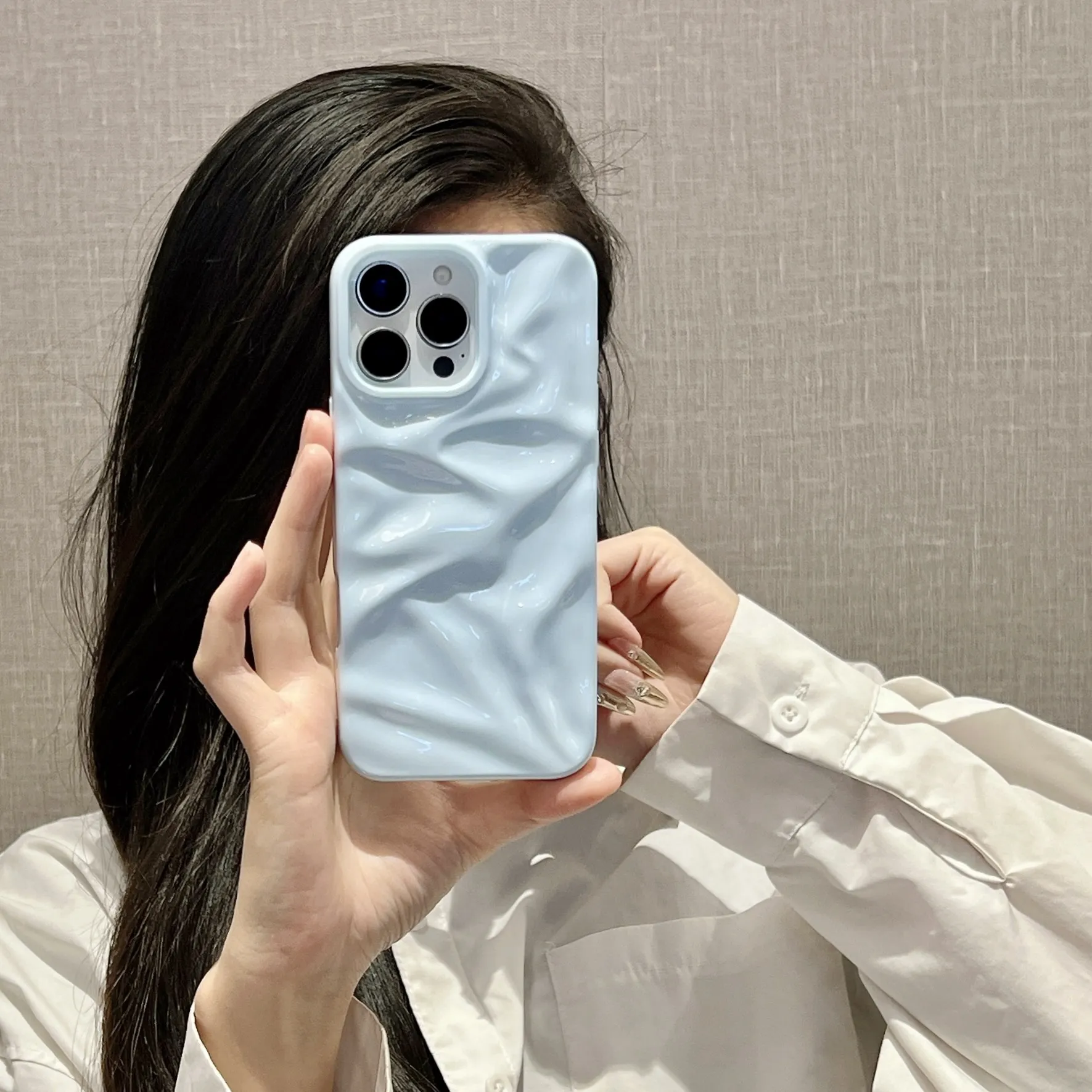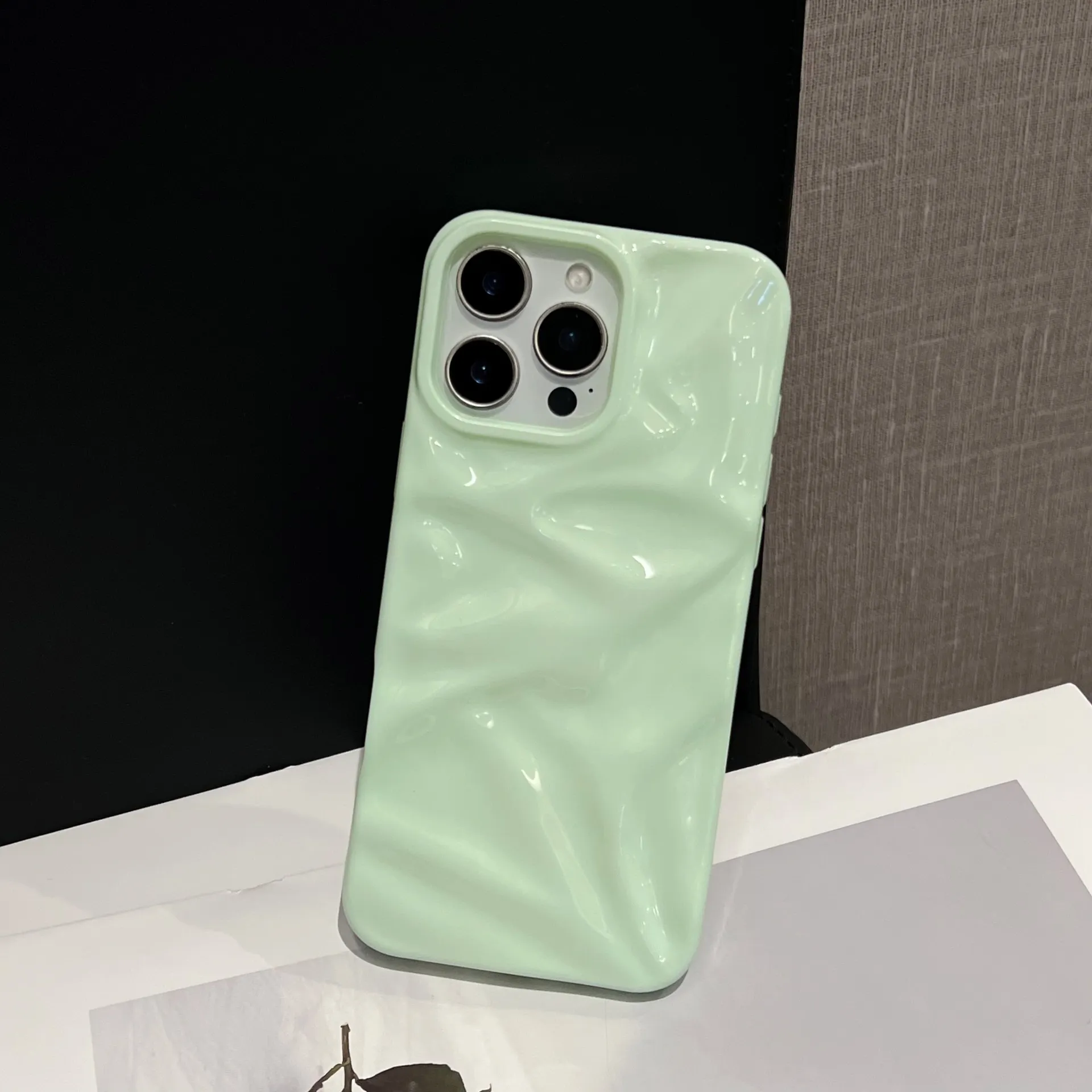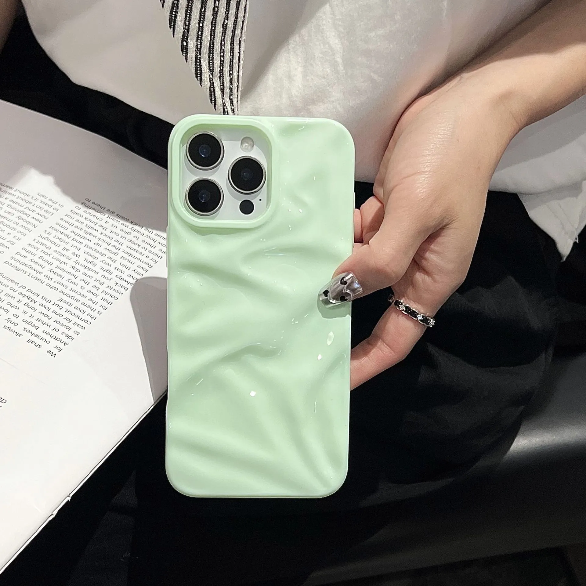 Ins Style Three-dimensional Pleated Pattern Macaron Color Series Phone Case