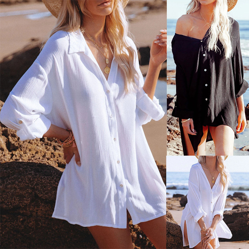 Ins Wind Net Red Lazy Beach Blouse Mid-Length Loose Shirt