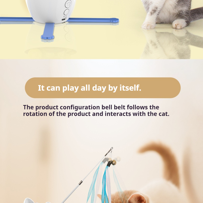 - Fun Stick Design: The Funny Stick attachment features a soft, flexible rope that sways and spins with motion, encouraging your cat to engage in playful batting and chasing. This feature is designed to mimic the movement of a wand toy, but with automated interaction, making it perfect for independent play.