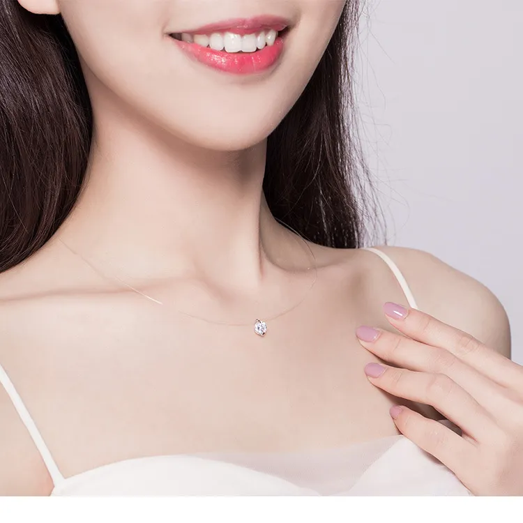 Invisible Fishing Line Necklace Zircon Pendant