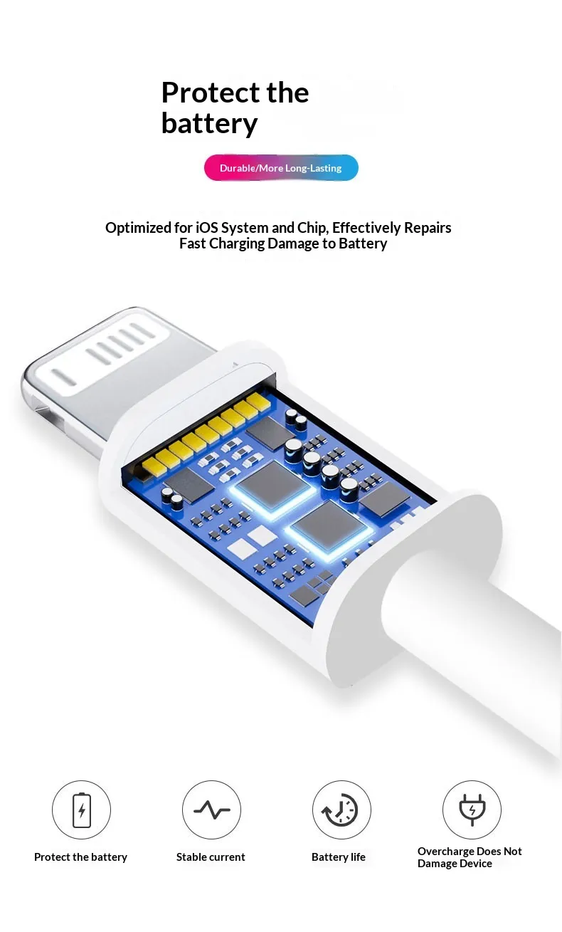 Fast Charging: The iPhone Cord ensures quick charging, delivering power to your iPhone efficiently so you can spend less time waiting for it to charge.