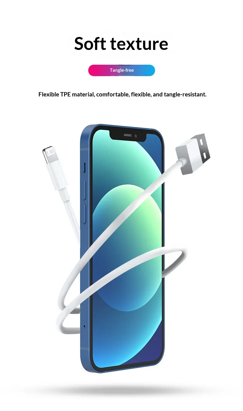 With its optimal length and tangle-free design, the iPhone Cord is both practical and convenient. Whether you’re charging in the car, at your desk, or on the go, this cord ensures you always have a reliable charging solution ready.