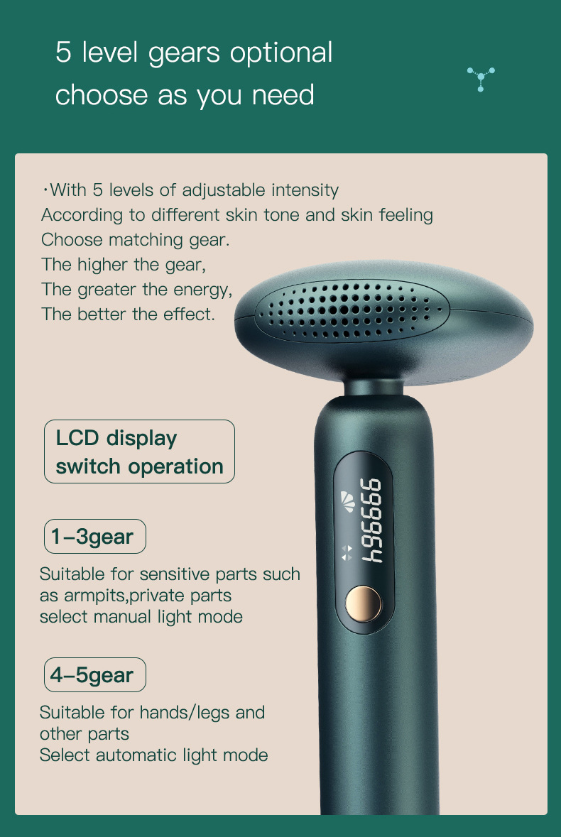 The IPL Pulse Hair Removal Machine comes with customizable settings to ensure the treatment suits your specific needs: