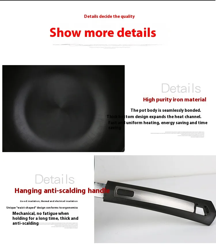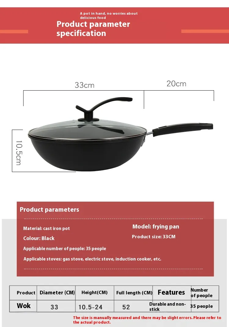The Iron Wok is made from high-quality cast iron, offering unmatched durability and heat distribution for cooking everything from quick stir-fries to slow-braised meals. Unlike traditional frying pans, the wok’s high, sloping sides allow for better mixing and stirring, while its heavy construction ensures that heat is evenly distributed across the cooking surface.