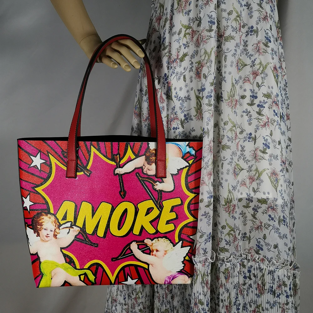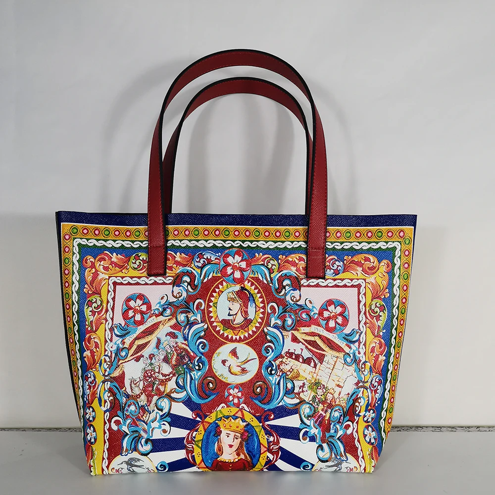 Italy Luxury Print Travel Shoulder Bag Floral Textured-Leather Shopper Tote large tote bag famous brand bag women girl handbag