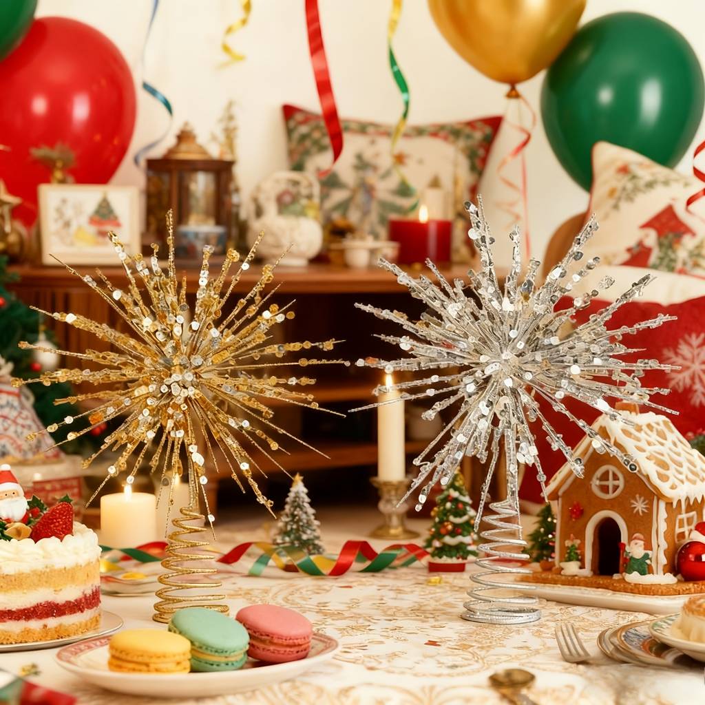 ITECHJOY Silvery & Golden Firework-Shaped Christmas Tree Topper – Add a Spark of Magic to Your Holiday Tree