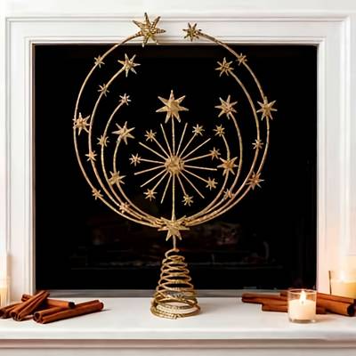 The ITECHJOY Silvery & Golden Firework-Shaped Christmas Tree Topper adds a creative, eye-catching element to your holiday decorations. Crafted from durable metal, this beautifully designed topper is shaped to resemble a burst of fireworks, combining shimmering silvery and golden tones that catch the light and bring a magical glow to your Christmas tree. Its intricate design and vintage style make it a perfect addition to any classic holiday decor.